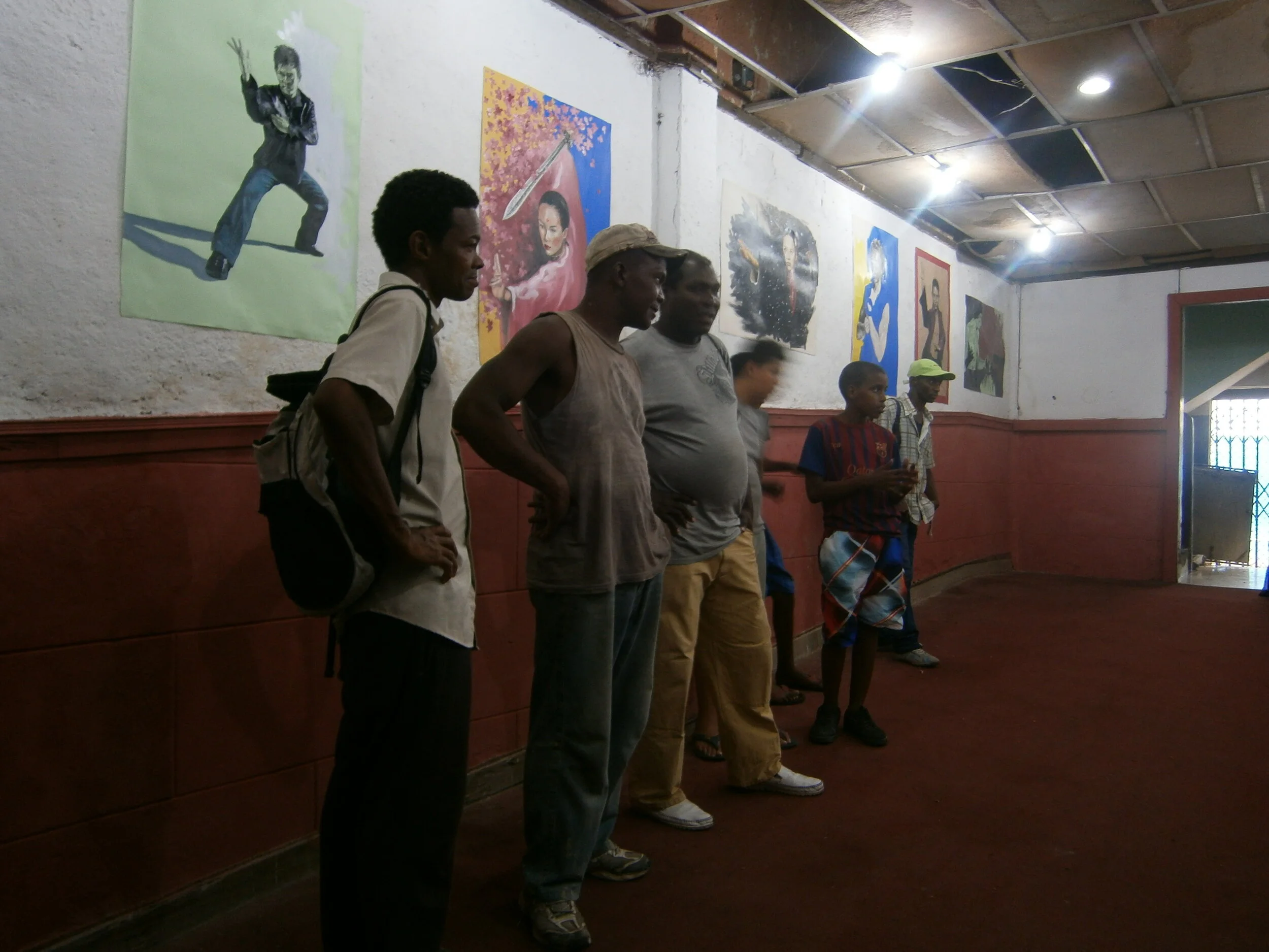 The Águila de Oro project attempts to explore the depths of the levels of interpretation and comprehension of an audience deeply immersed in the standards and stereotypes imposed by society. It represents the imaginary collective through violence and marginality, as well as the media hero and the hero in the streets, their struggles and means of survival. It shows the constant contrast of assimilations from our context into foreign constructs of commercial cinema and martial arts. These limits flow, intermingle and are contaminated with a single result: a re-reading of codes that leads to new interpretations, new frontiers, new insights. Hence, the choice of location for the development of the work. The intervention has different media within its structure: video, video documentation, environment, drawing and painting.